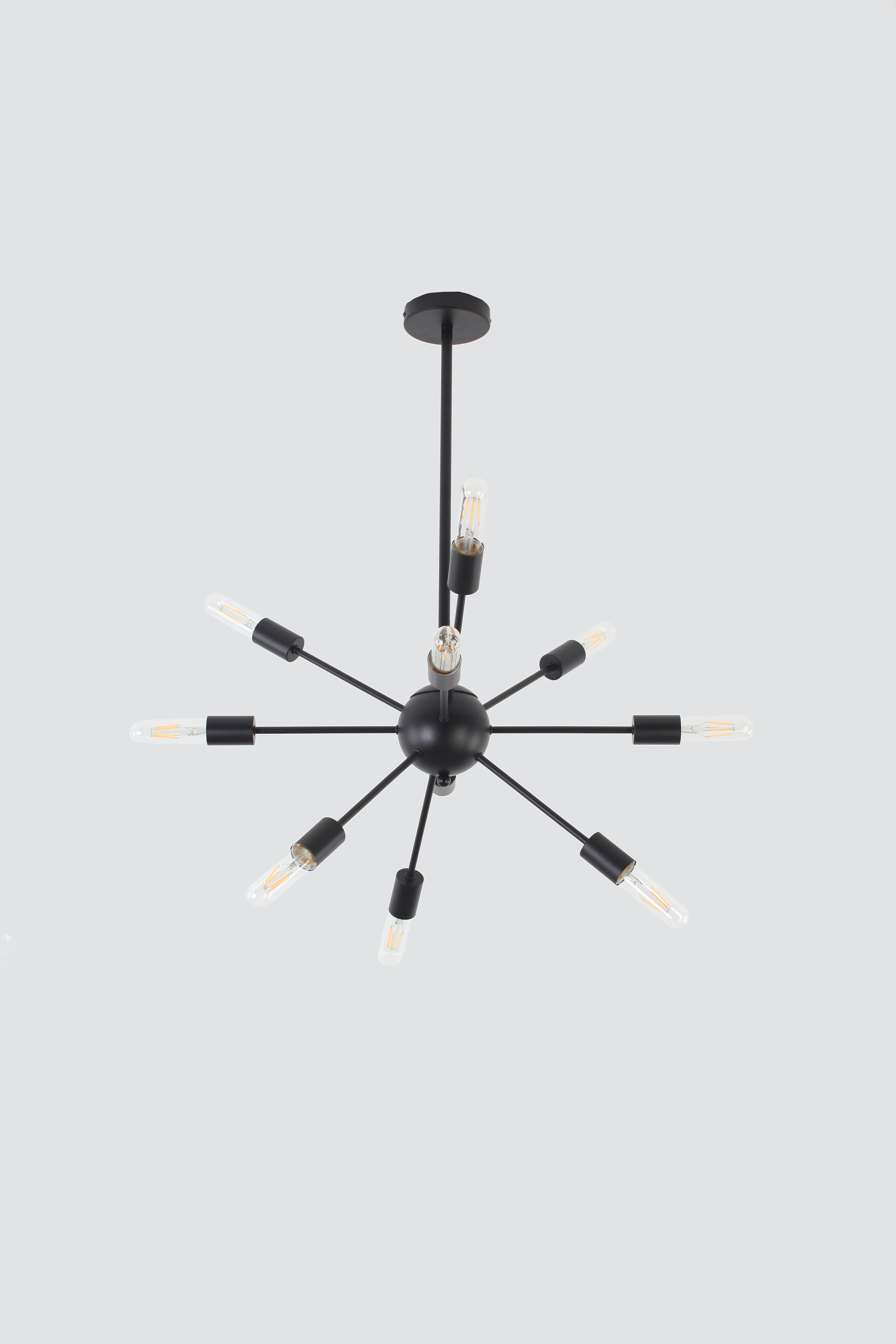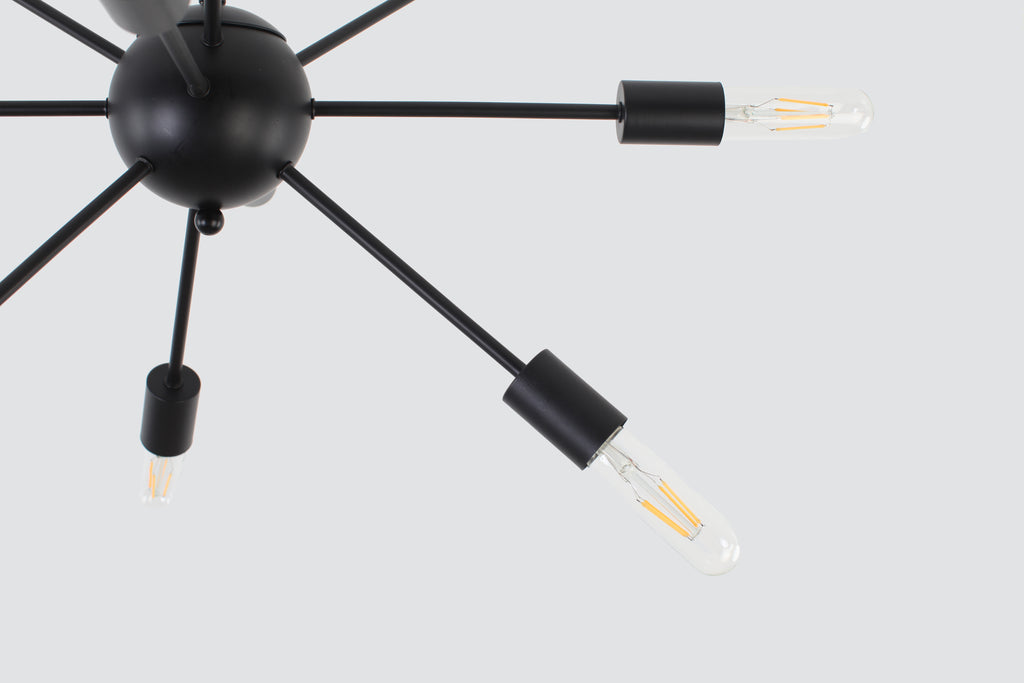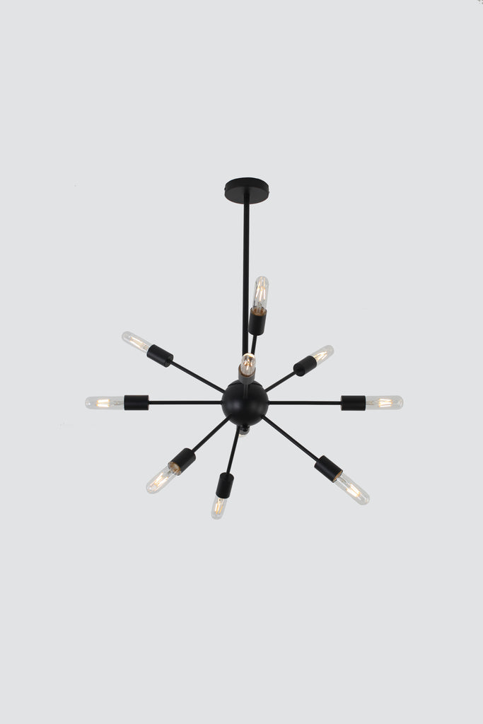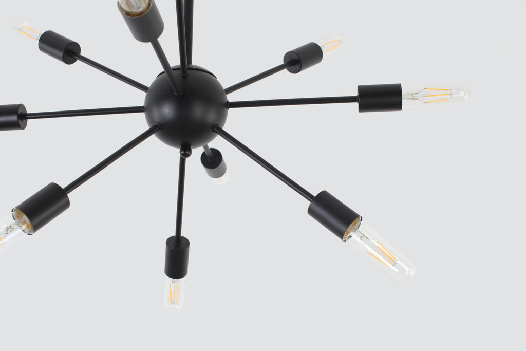 Sometimes simple is more. This is definitely the case here. Ten lights explode from the orb, giving this piece a dynamic, mid-century-inspired look. This sputnik light comes in a calming matte black finish that compliments almost any space from your stairs to your breakfast table, to almost any dining area. This light checks all the boxes.