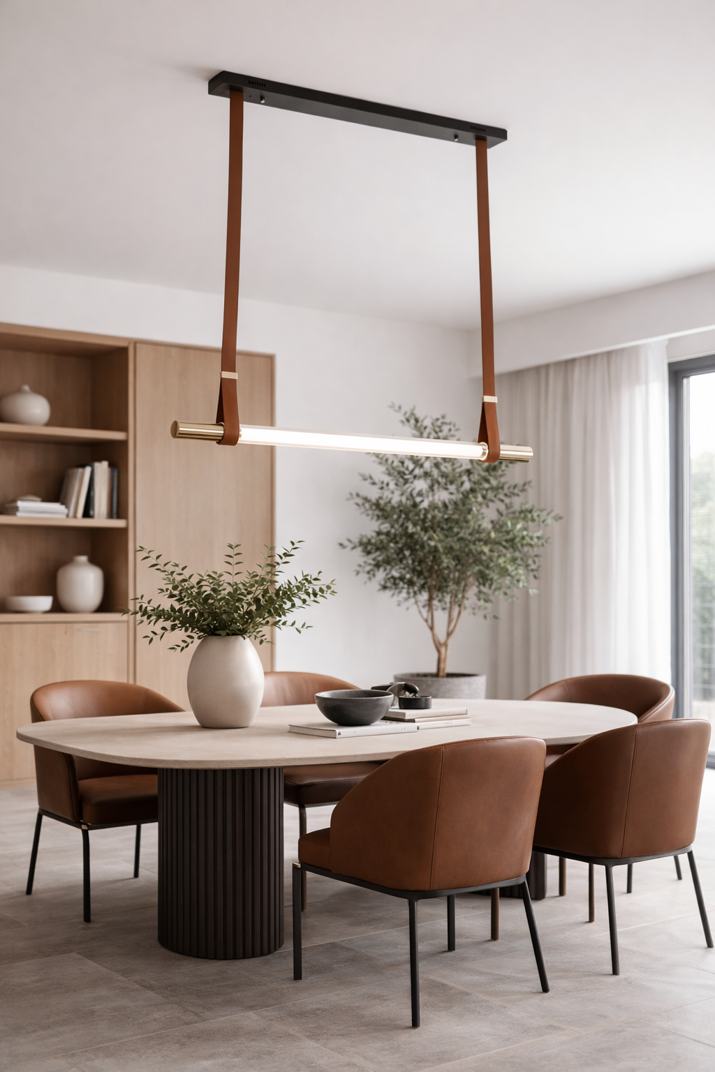 Elevate your space with the refined simplicity of this modern leather suspension pendant. Designed to make a quiet statement, it features two rich leather straps that gracefully support a sleek linear light bar, blending warmth and minimalism in perfect balance. The contrast of soft, natural leather with crisp architectural lines creates a striking yet understated centerpiece—ideal for contemporary kitchens, dining areas, or open-concept spaces.