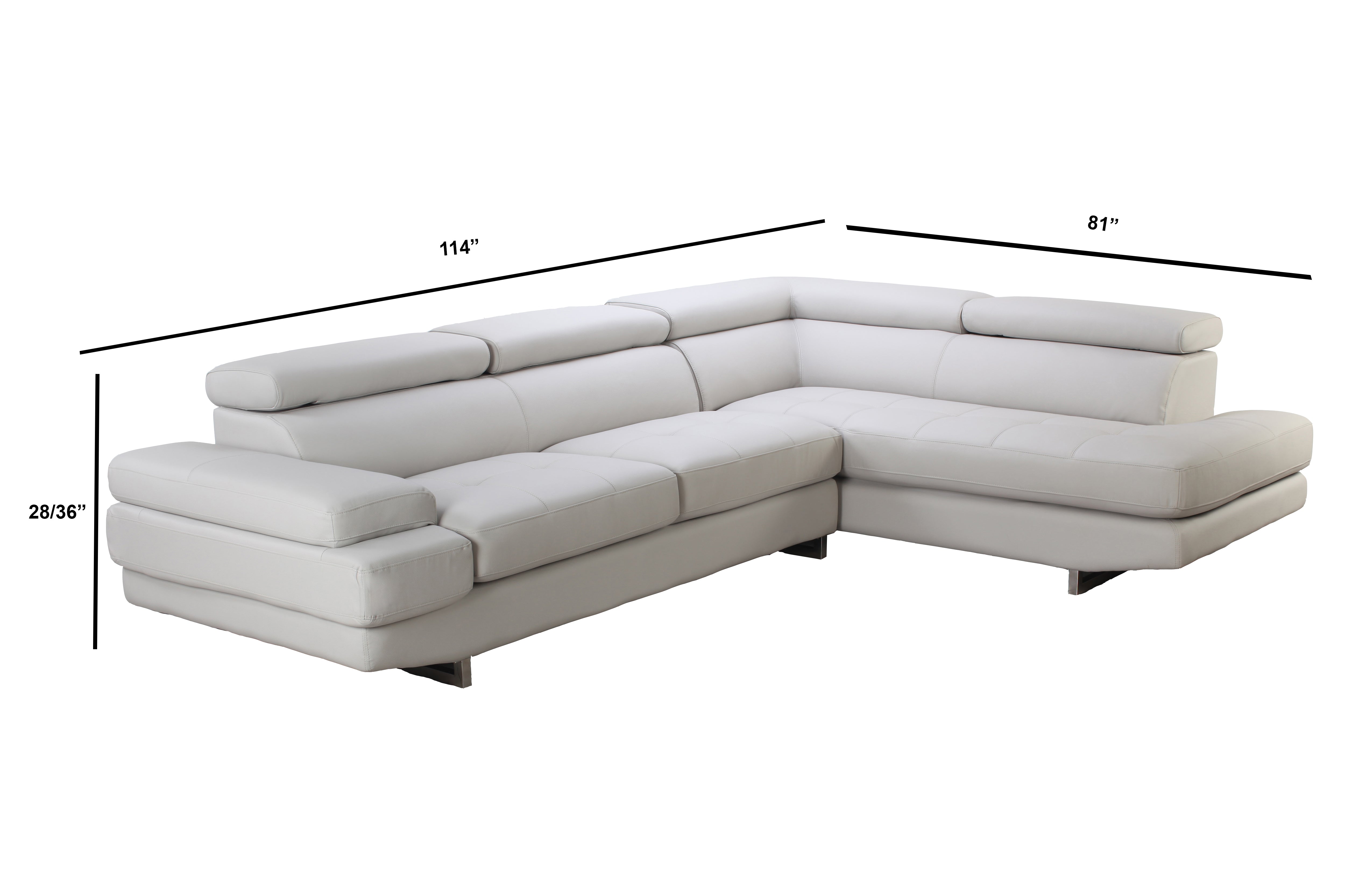 - 114" L x 81" (chaise) W x 28/36" (adjustable head rest) H