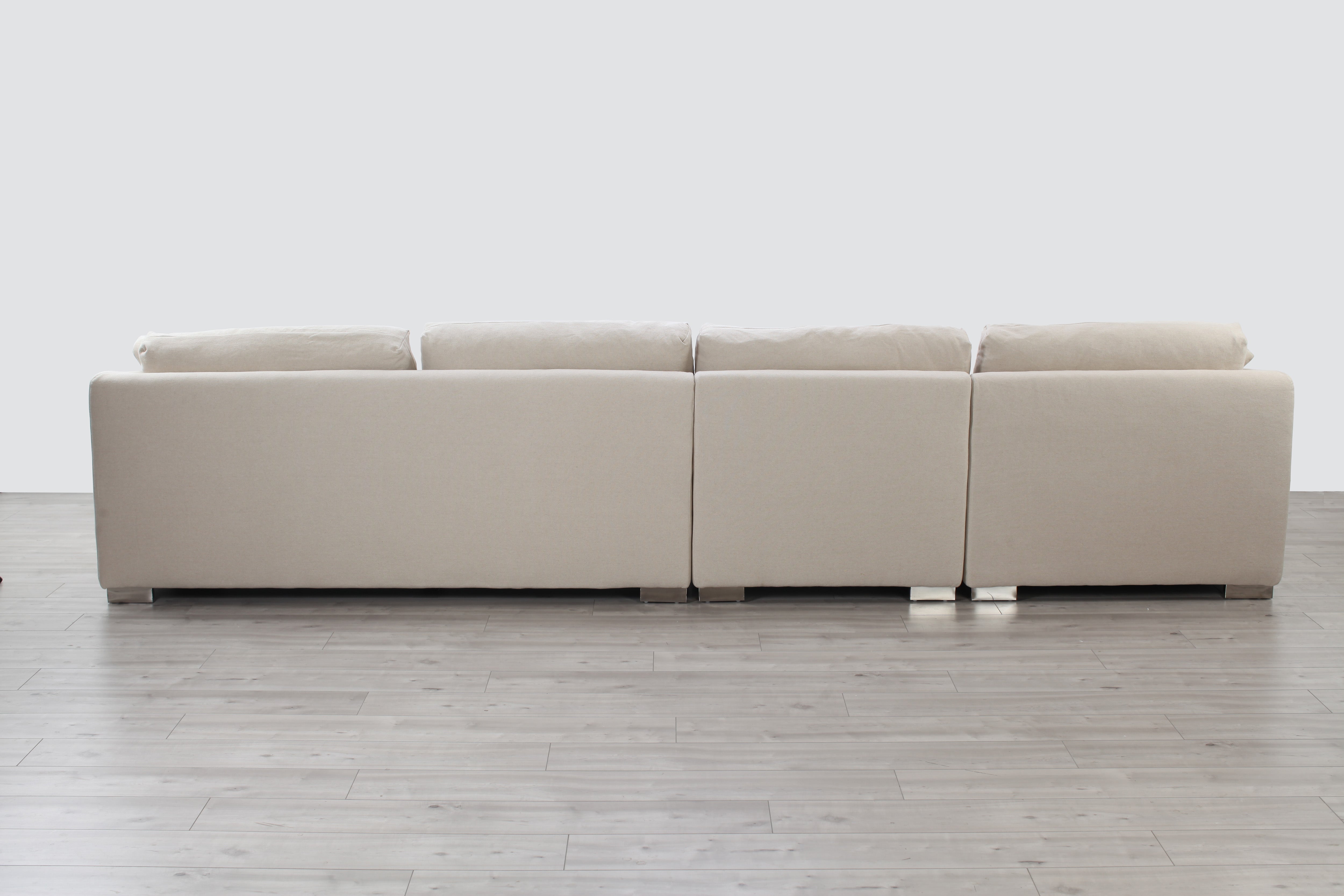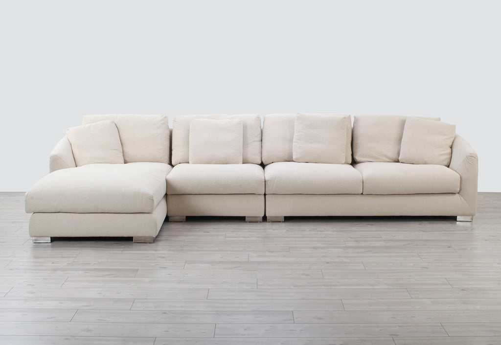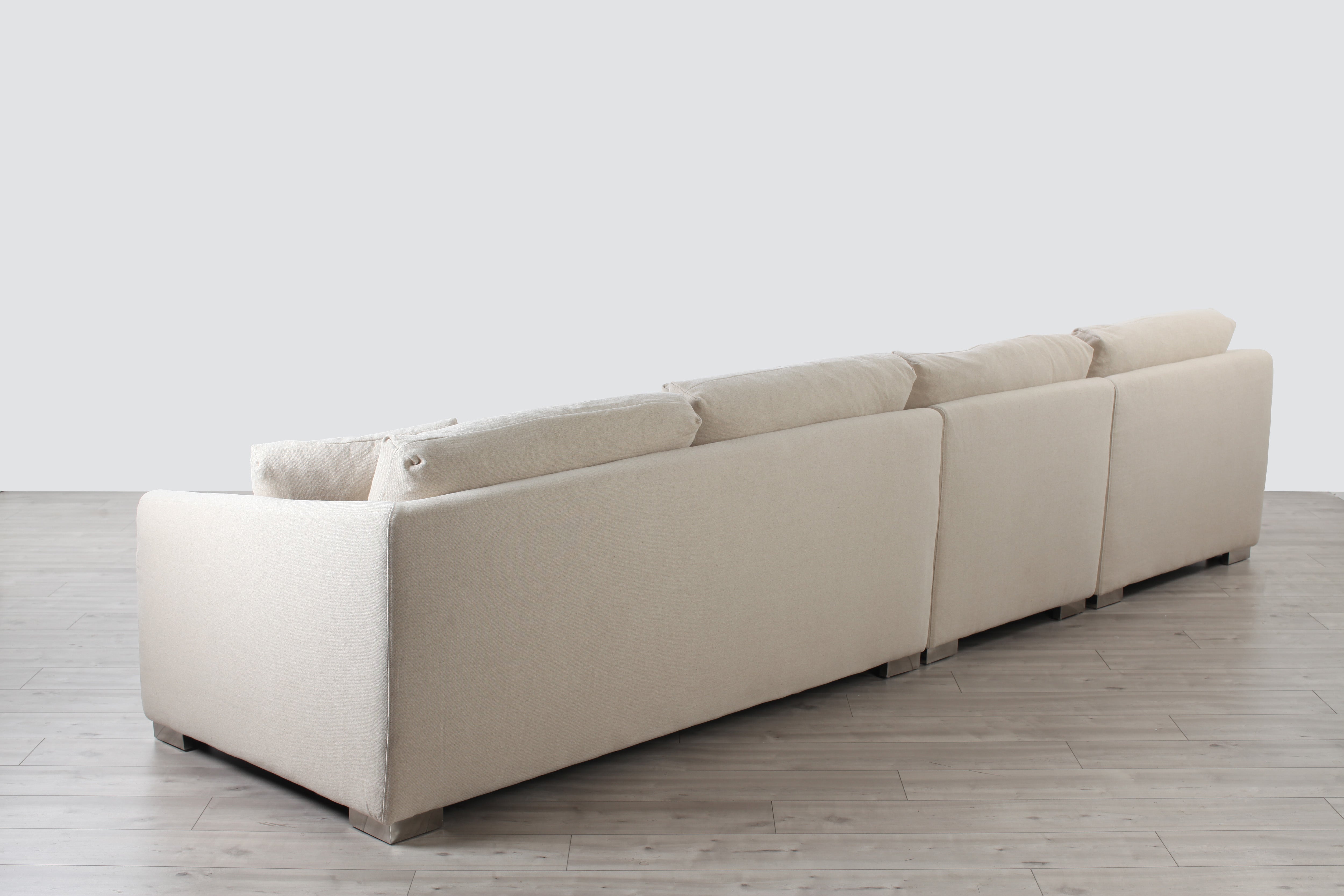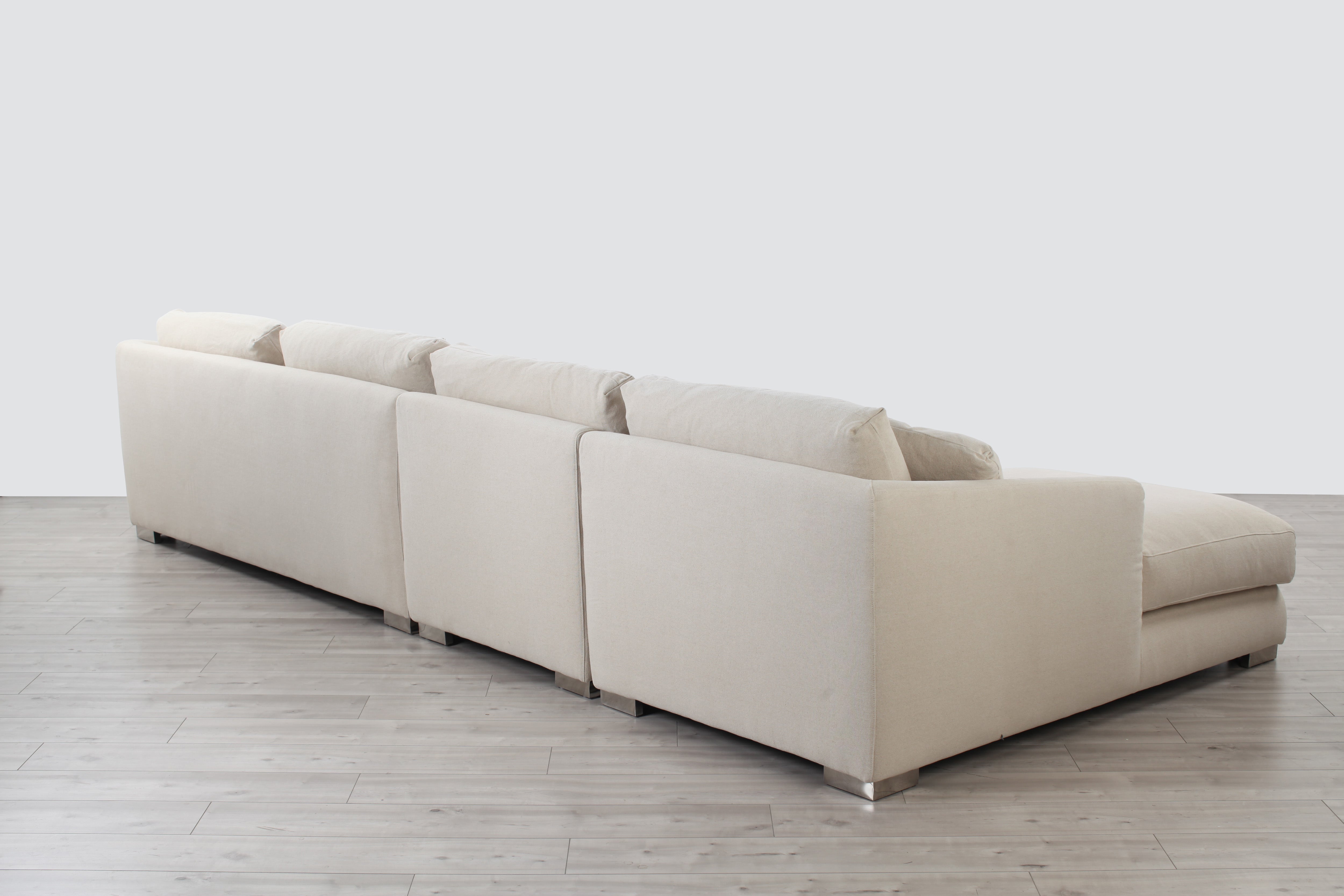 Sink your body into this modular sofa that is made with the finest fabrics and stuffed with Arctic duck feathers. The sofa is so soft that your body gets consumed by the cushions and make you instantly fall asleep. Constructed in solid wood frame with pirelli webbing guarantees the sofa will last a generation.