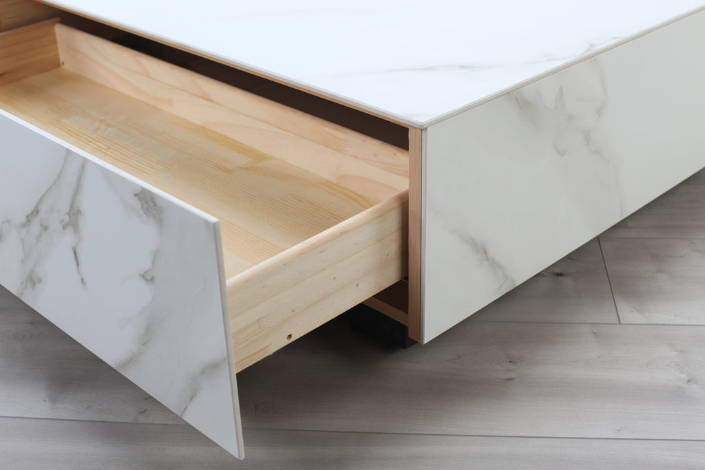 The Debbie Coffee Table has a natural slate exterior and a solid wood interior construction giving it a very sleek look that can complement any living space. The slate is natural making it heat, scratch, and stain resistant. Get the matching TV Stand to complete the set.
