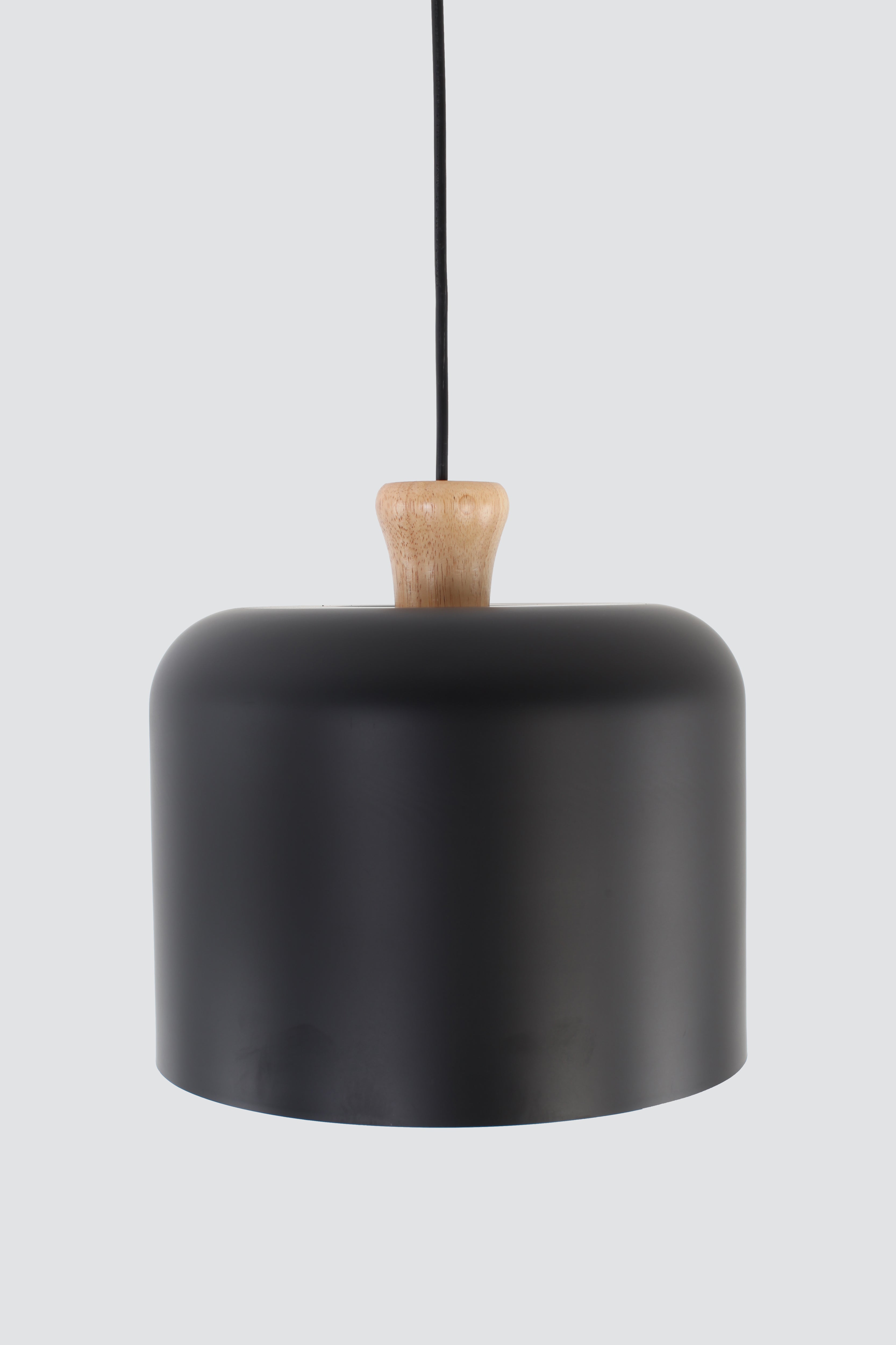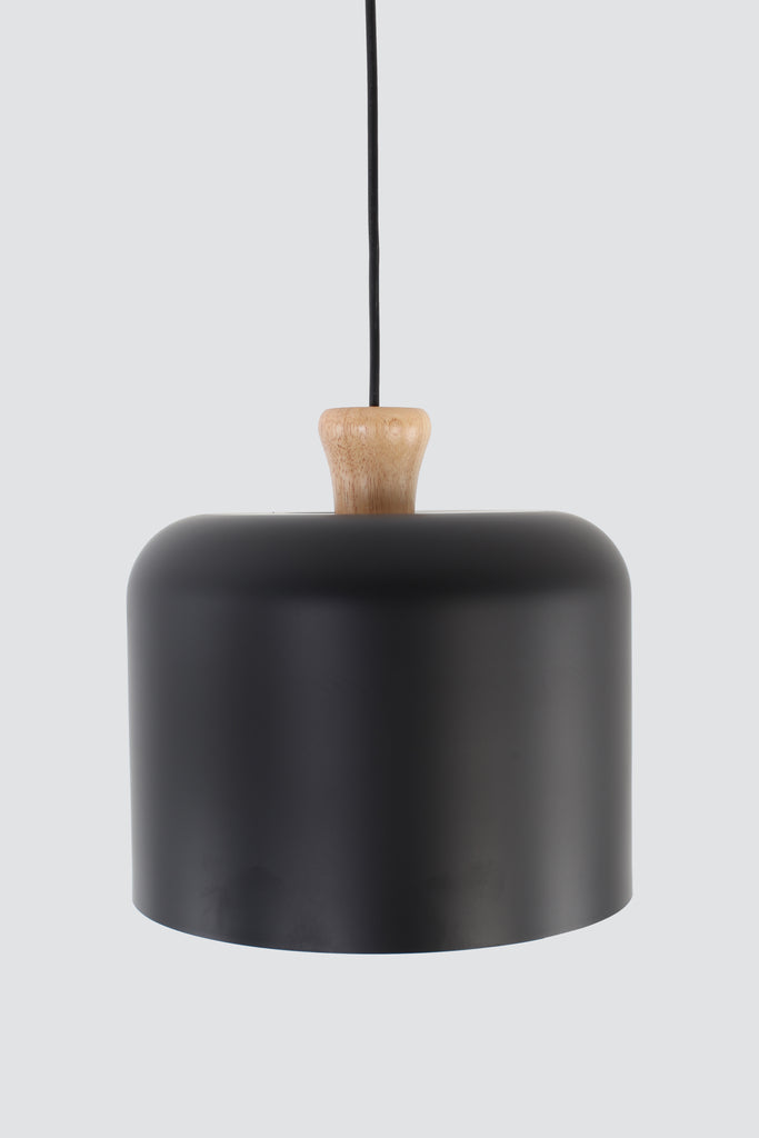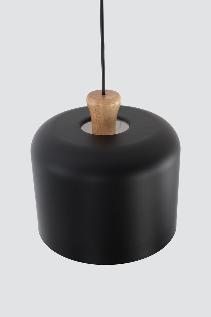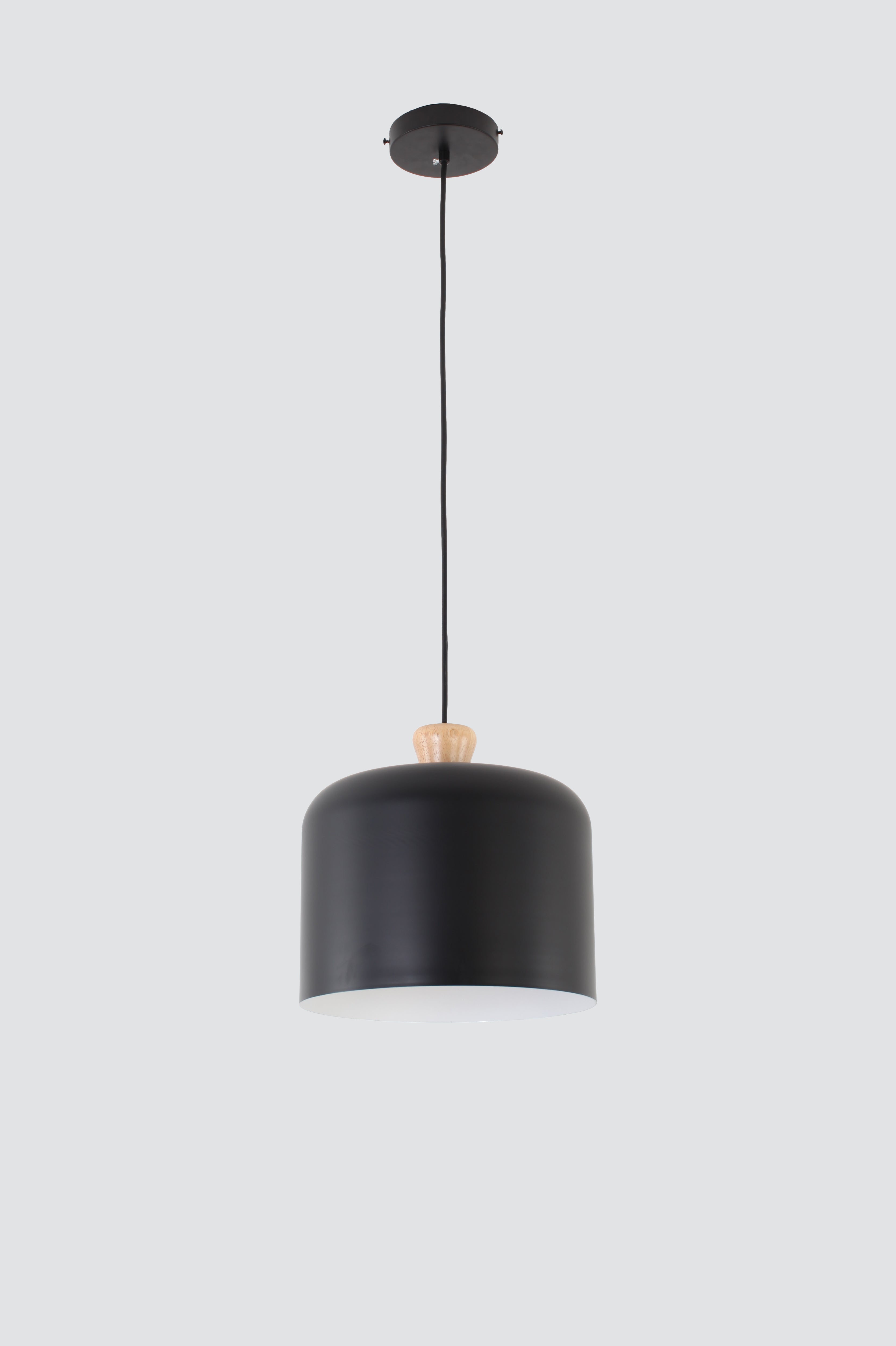 Single white pendant light complimented by a solid wood accent that gives the lamp warmth and a modern aesthetic. The fixture radiates a warm, ambient vibe that makes it suitable for placement in kitchen islands and dining rooms.