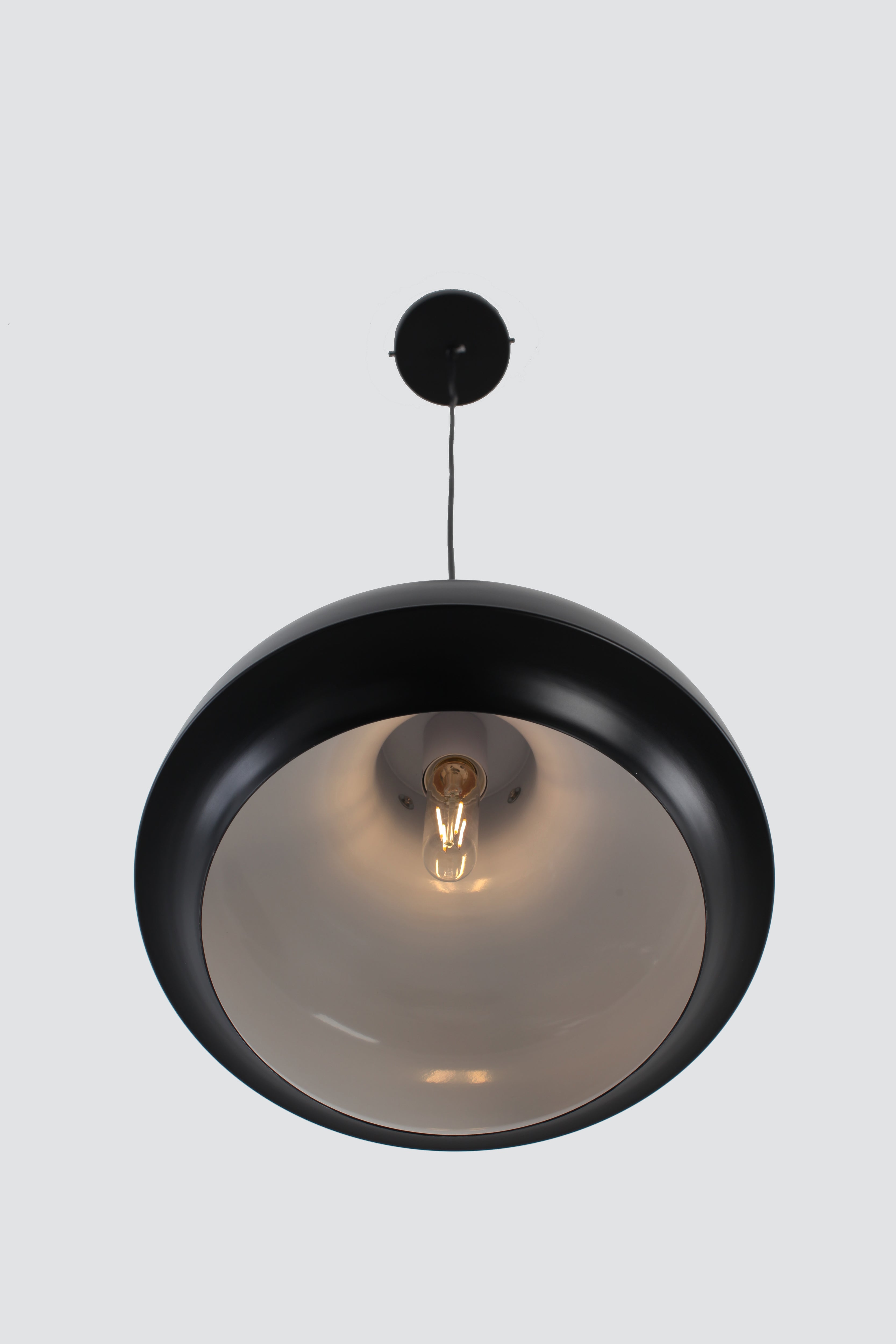 Stunning single pendant light brings a touch of classic industrial charm to interiors as it brightens. Ideal for kitchen islands as a set of 2 or 3, or even use as a single pendant for a small breakfast table. White coating interior reflects light to make the room brighter even though it only features a socket with a single bulb.