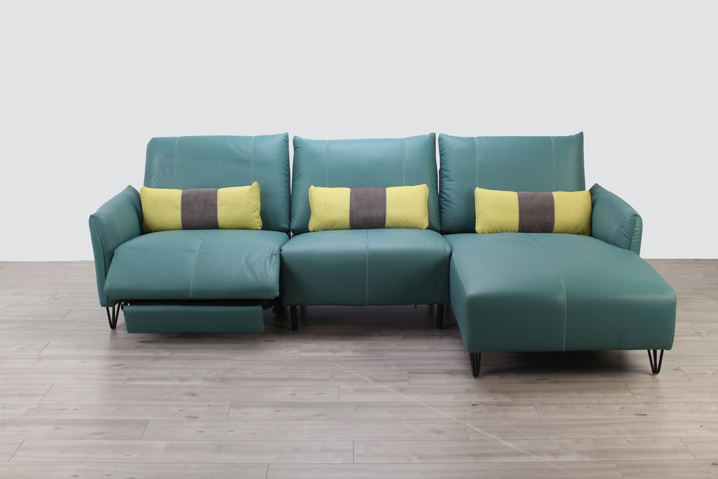 The Tiffany sectional, where modern features meet contemporary styling, will satisfy those who appreciate mid-modern design, extravagant comfort, and the latest in technology. This sectional sofa is made with top grain leather imported from Brazil to provide the ultimate in comfort and quality. Power seats recline the leg rest to offer relaxation and comfort, and the USB port allows you to stay connected without moving. Durable hardware legs ensure the Tiffany sectional will serve you for years, withstanding daily wear and tear.